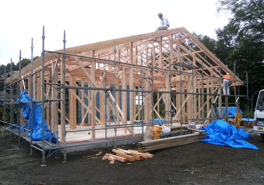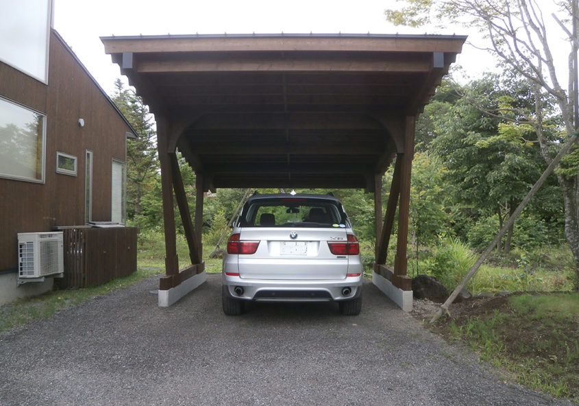 以前設計施工いたしました別荘のお庭に、車庫を増築いたしました。